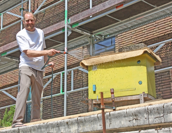 Geert experimenteert daarom met een bepaald soort matten bovenop zijn kasten, die hij nat kan houden.