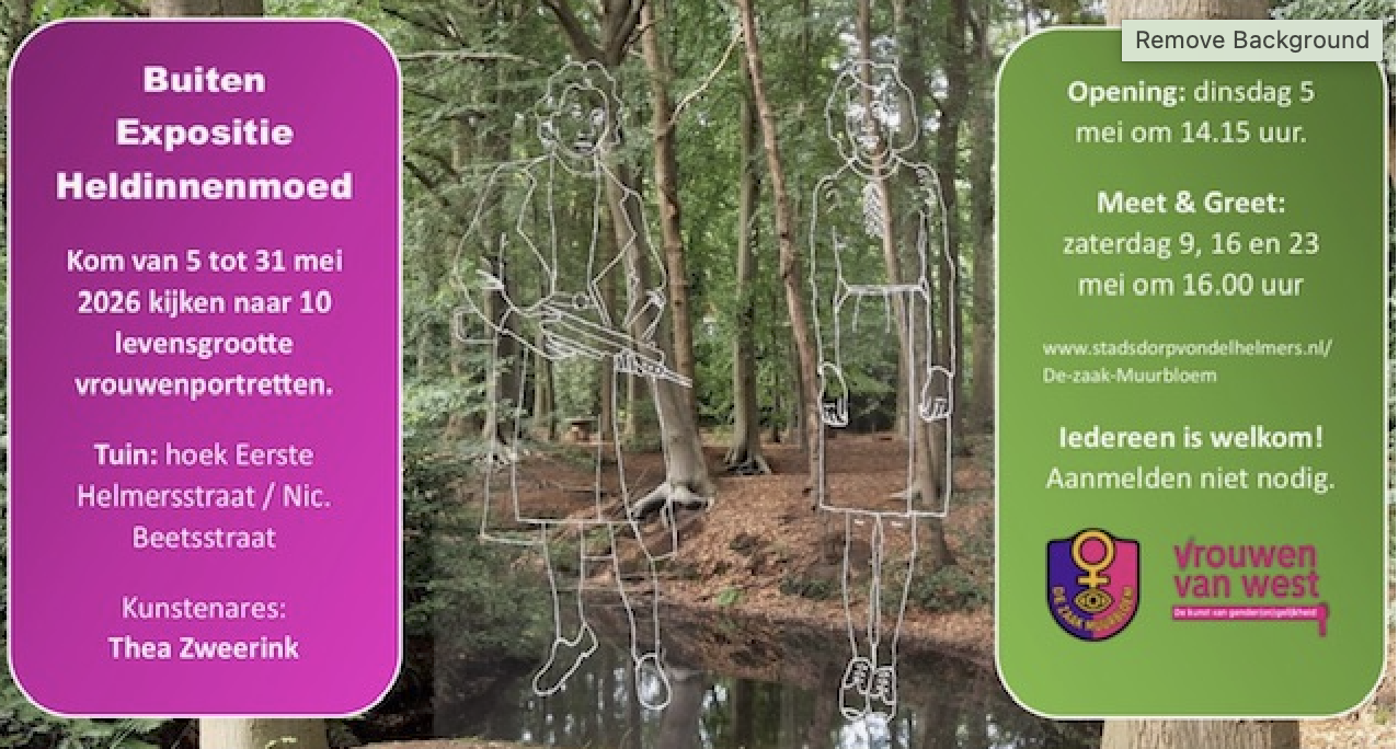 De eerst drie zaterdagen in mei geeft De Zaak Muurbloem bij de expositie Heldinnenmoed meer uitleg over de geportretteerde vrouwen. Daarna nemen we mee naar een plek in de buurt waar een moedige vrouw heeft gewoond of gewerkt. Je leert zo ook weer iets nieuws over je buurt. Iedereen is welkom. Aanmelden is niet nodig.