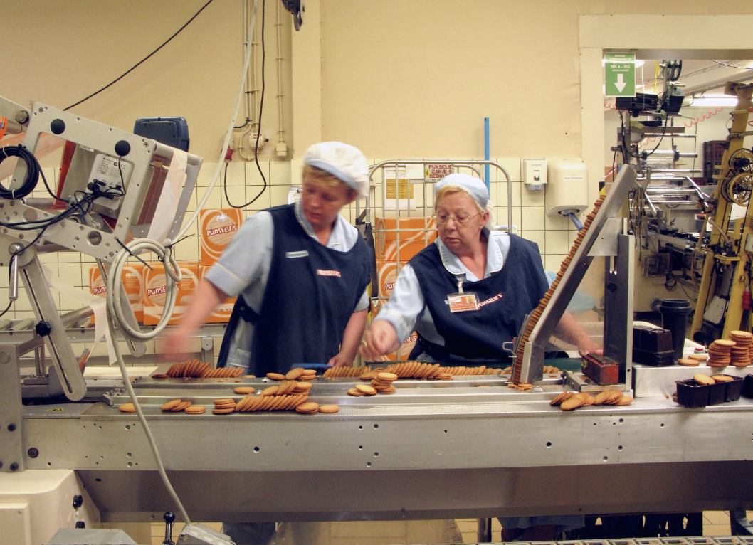 In de fabriek werken al jarenlang dezelfde medewerksters die er net zo verjaard uitzien als de machines. Hun handen grijpen zonder te hoeven kijken naar de koekjes op de lopende band en onder gemopper springen zij op als de stroop voor de zoveelste keer op de grond sijpelt. De film Koekenbakker Punselie is een cinematografisch verhaal over de rijkdom en de beklemming van een